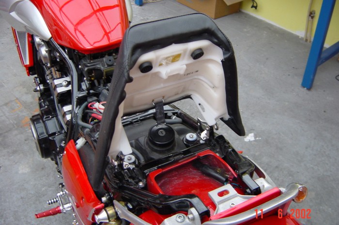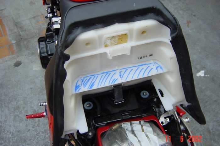 Um mehr Stauraum zu erhalten empfehlen wir den Verbindungssteg unter dem Soziasitz bis auf ein Rest von 5mm auszuschneiden. |